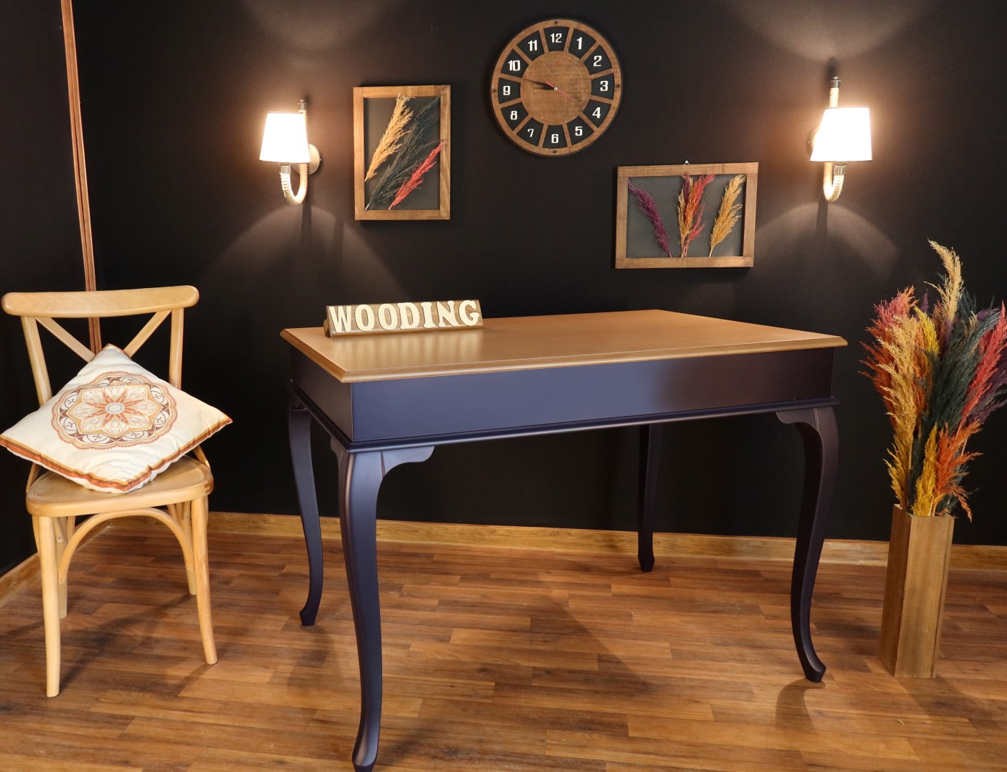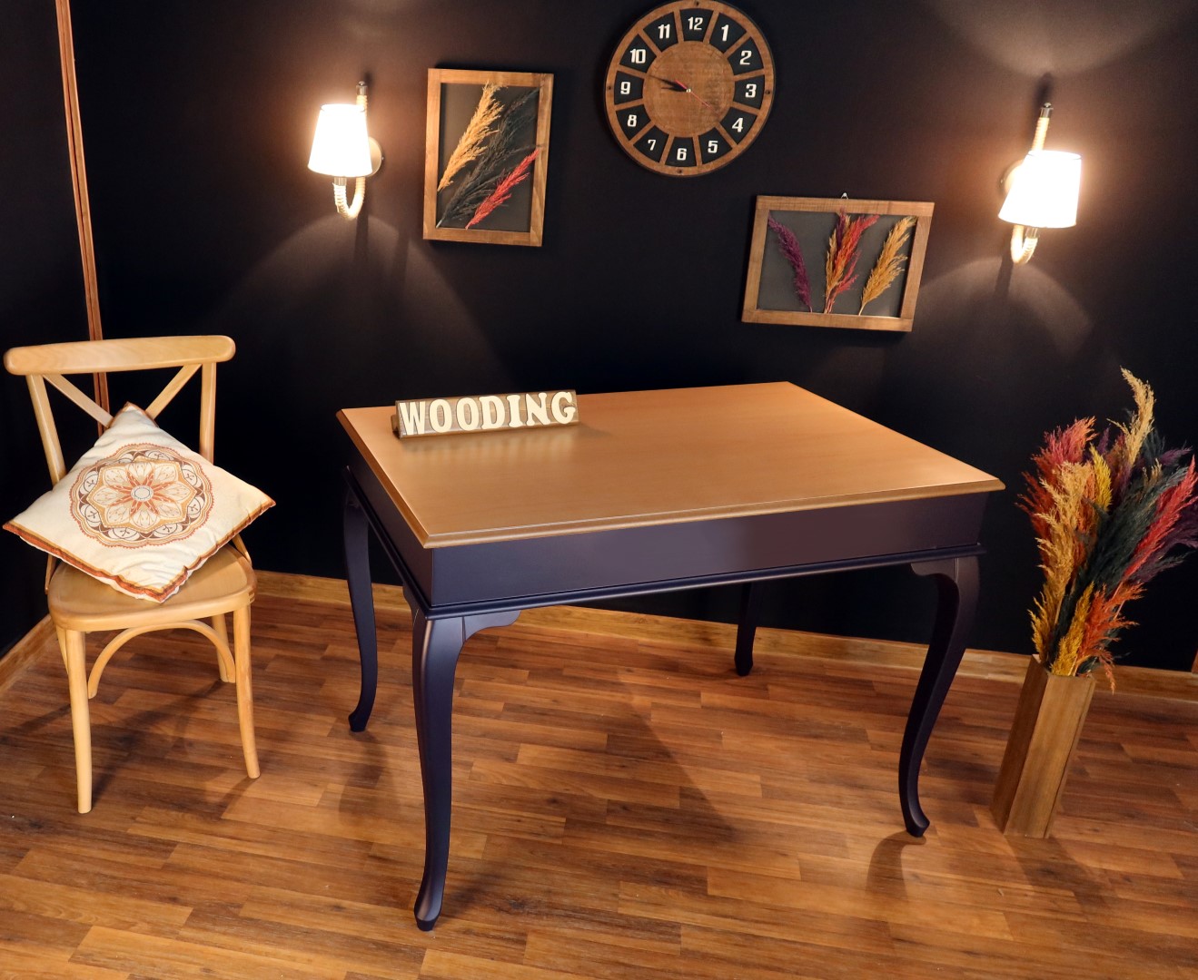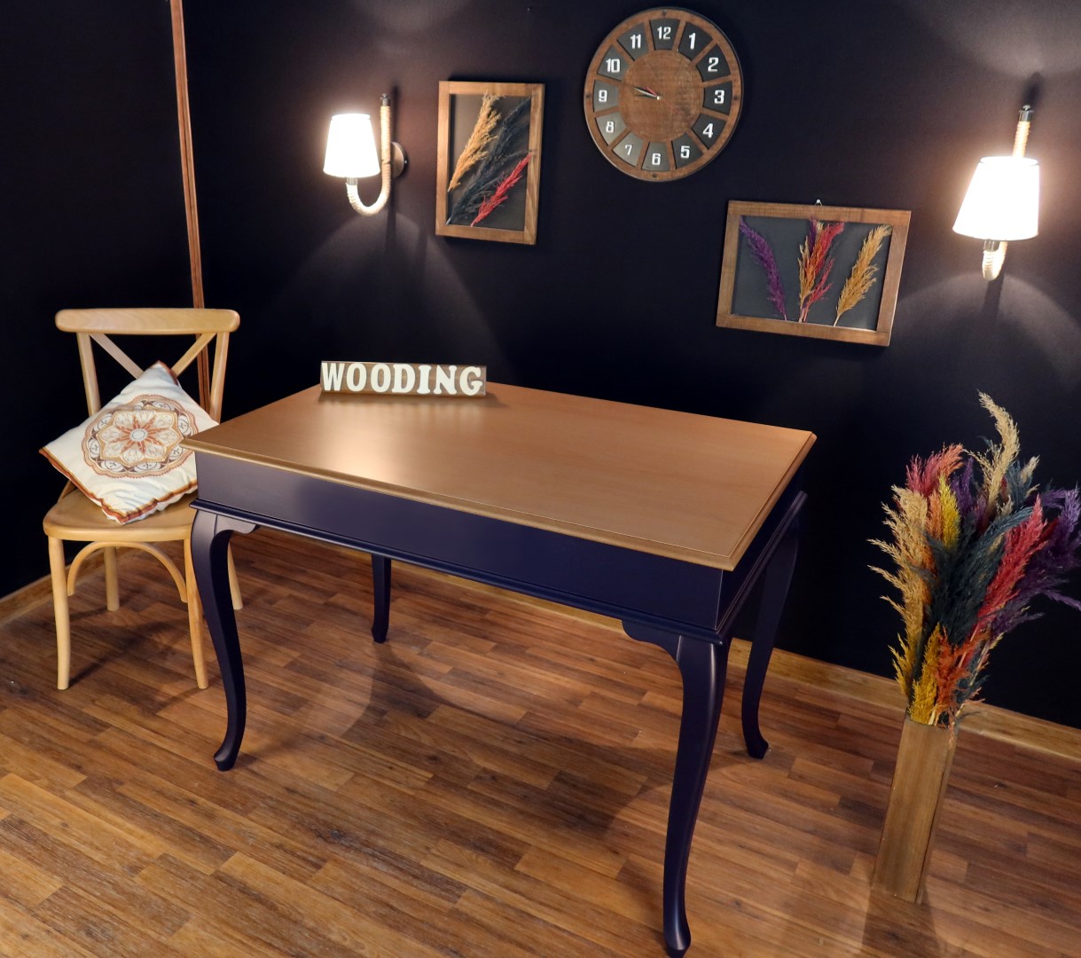 Wooding 100 Cm Masif Lacivert Naturel Yemek Masası