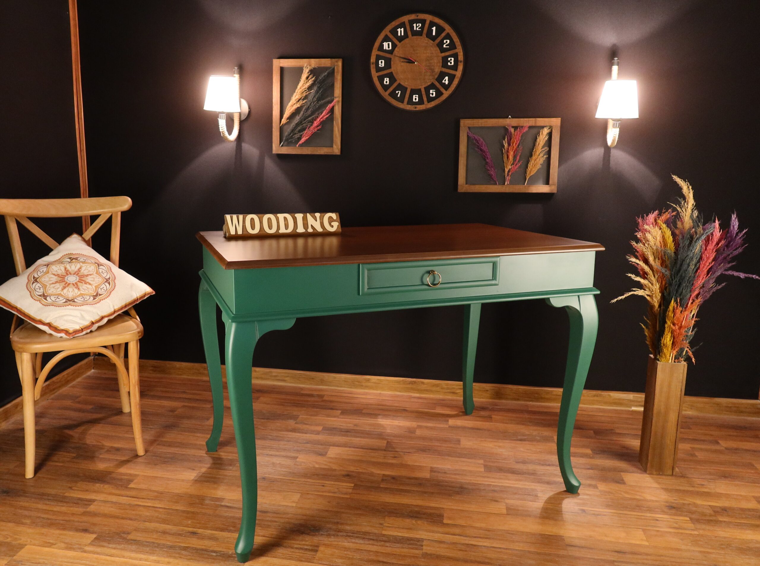 Wooding 120 Cm Masif Yeşil Ceviz Çalışma Masası