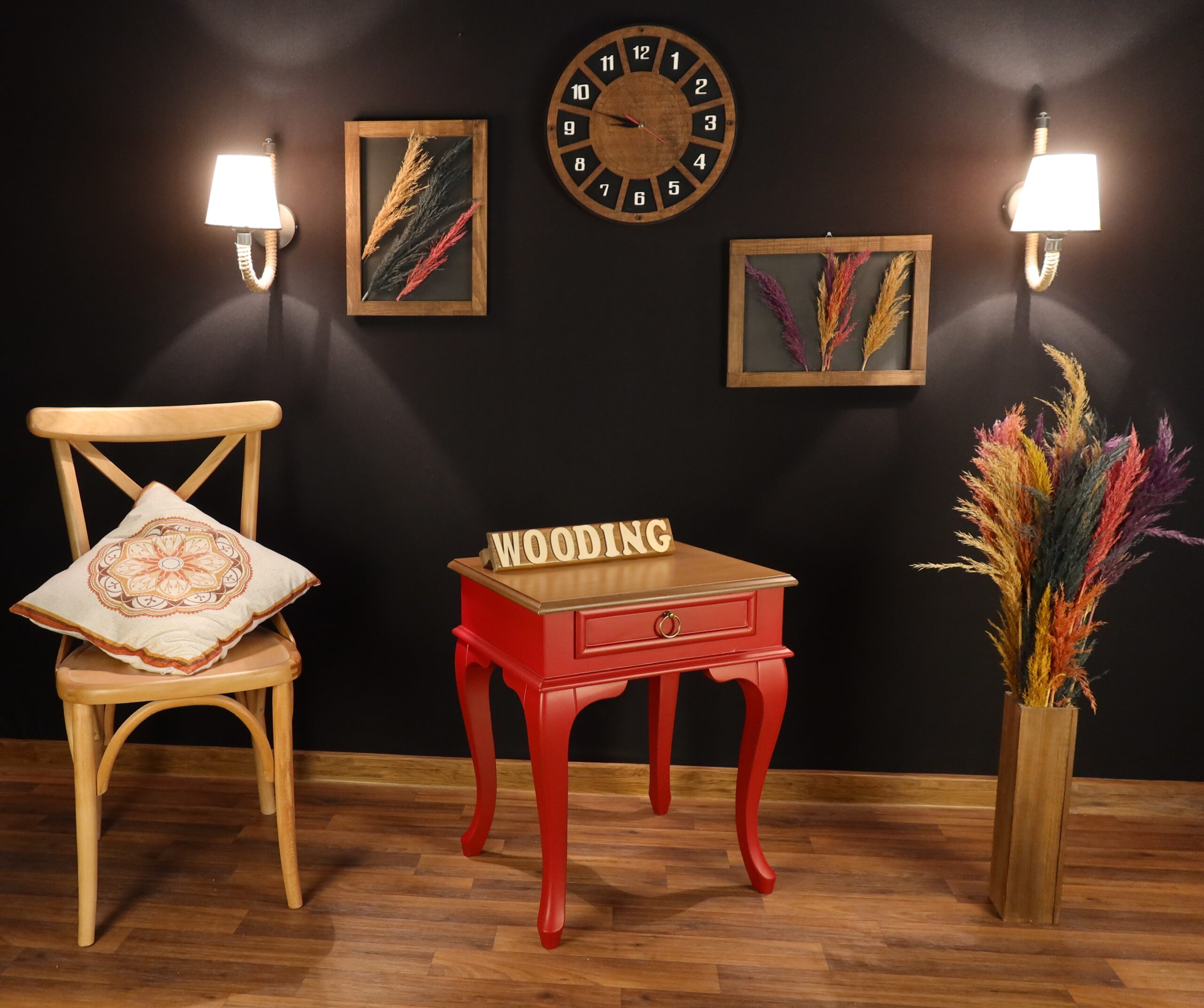 Wooding Masif Kırmızı Naturel Komodin Telefonluk