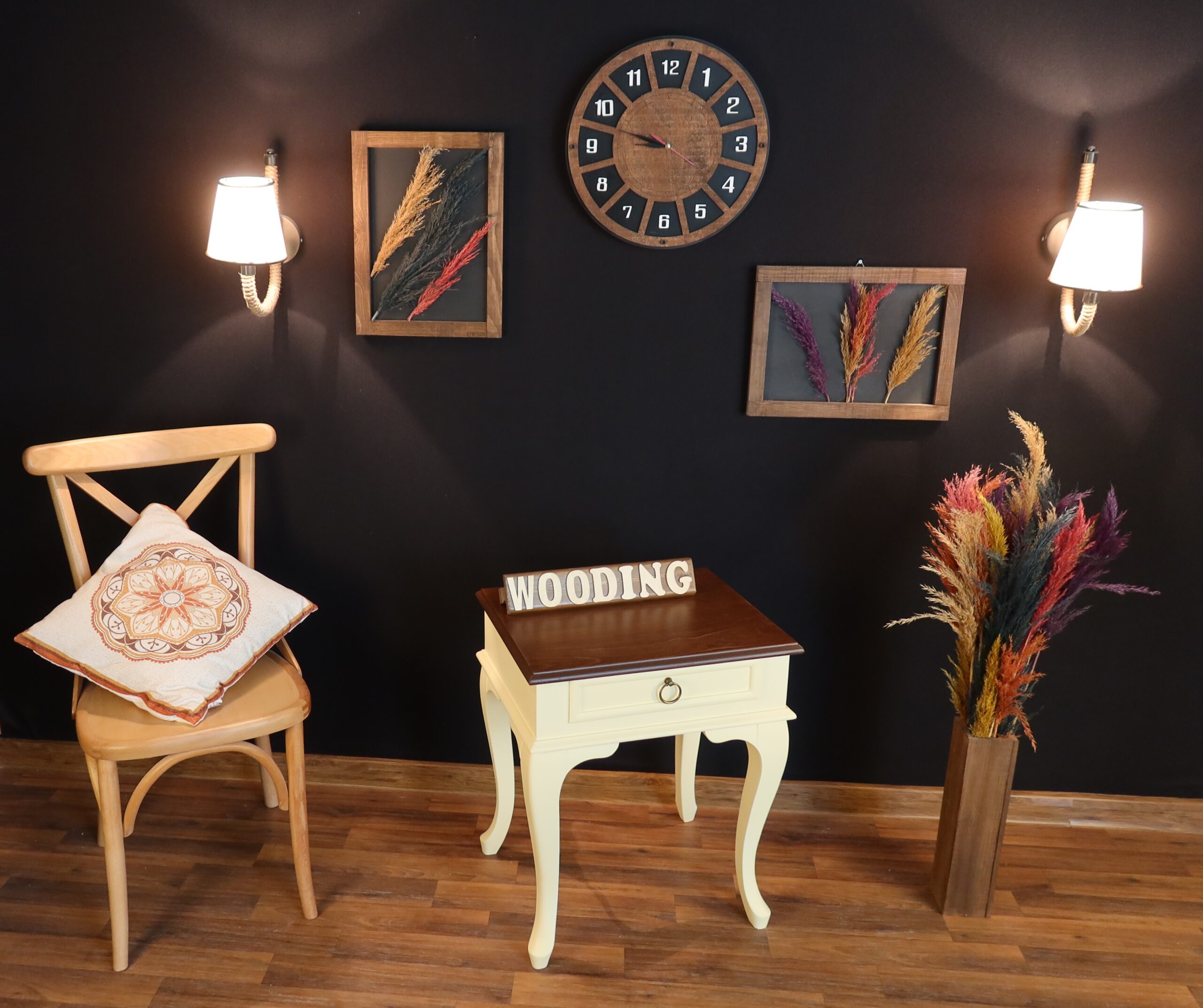 Wooding Masif Krem Ceviz Komodin Telefonluk