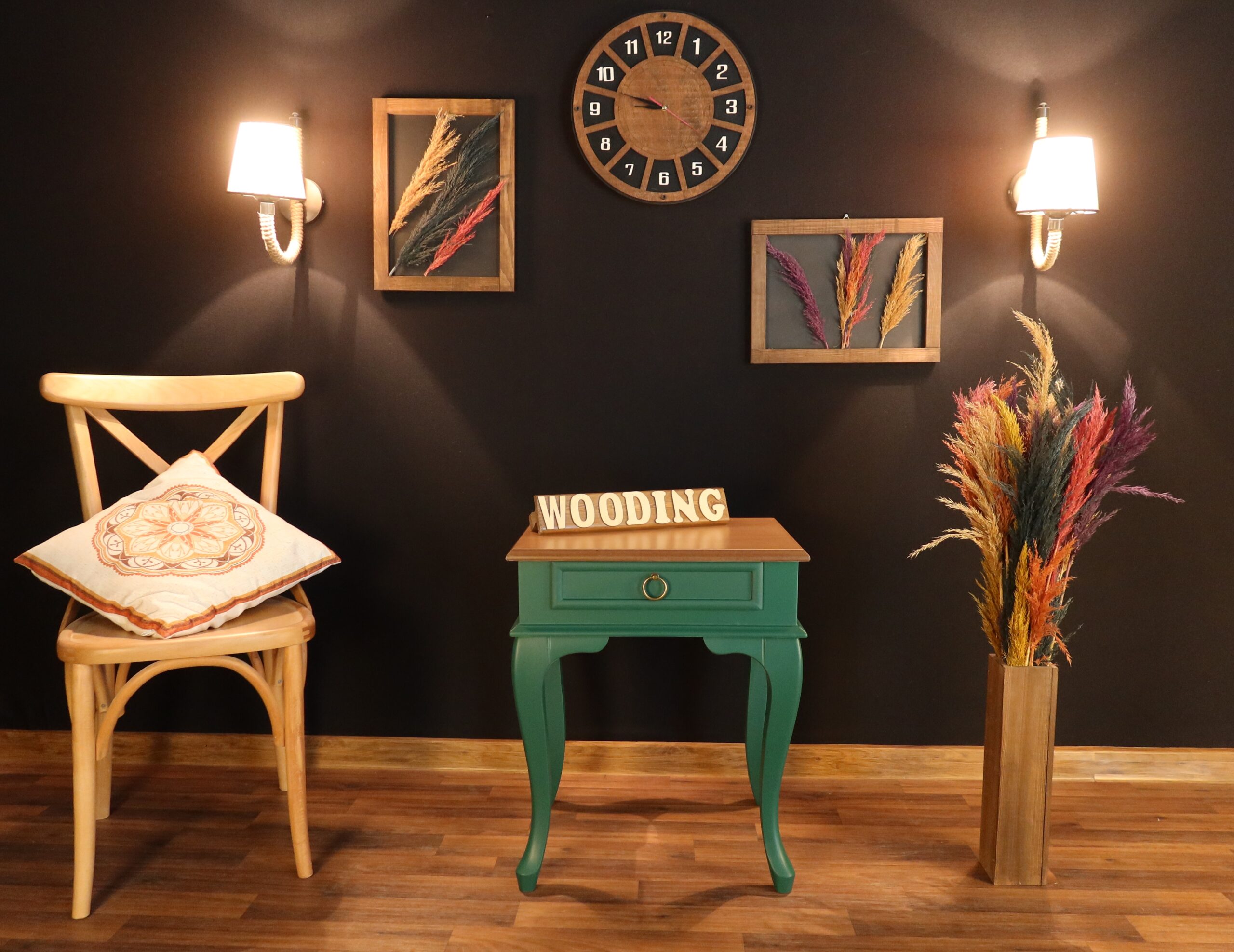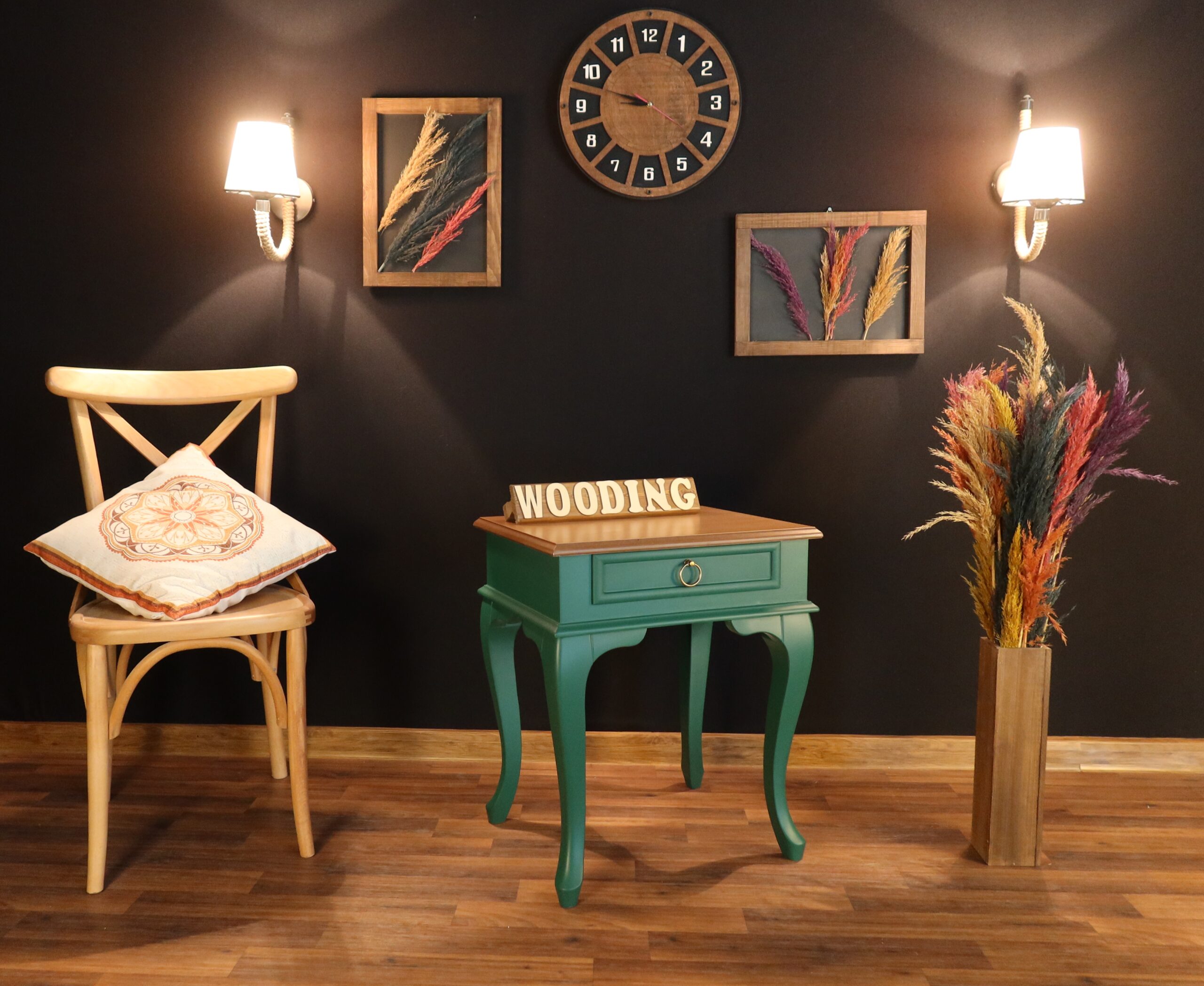 Wooding Masif Yeşil Naturel Komodin Telefonluk